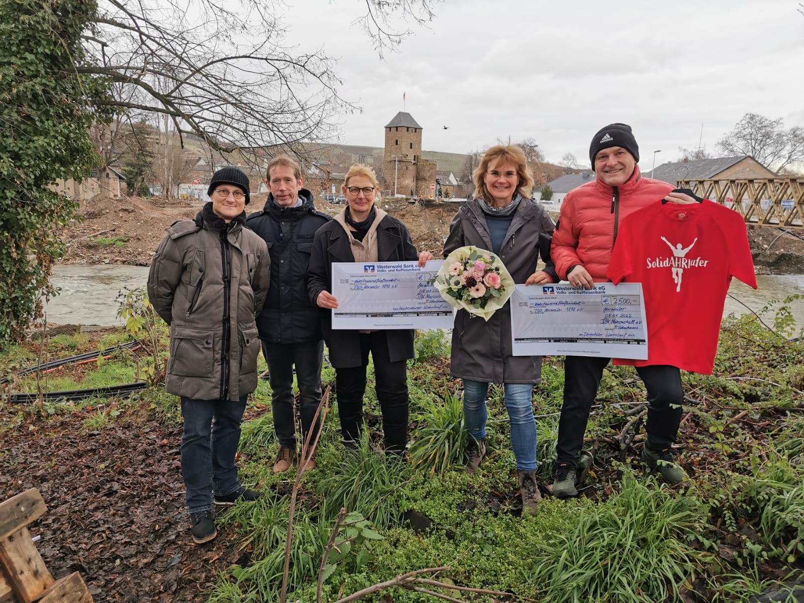 v.l.n.r. Dirk Kiese, Achim Leicher, Patricia Schuchmann (alle DJK Marienstatt), Sabine Schenke (TUS Ahrweiler), Dirk Schumann (Derentaler Löwenlauf)